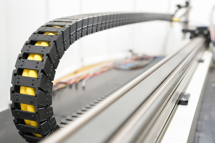 La prueba C-Track simula el estrés que los cables soportan en sistemas de cadenas portacables o cadenas de energía, donde experimentan una flexión repetida y constante en una sola dirección. Este tipo de prueba garantiza que los cables puedan funcionar de manera confiable en entornos automatizados de alto ciclo sin fallas. A continuación, algunas aplicaciones clave donde la prueba C-Track es esencial: